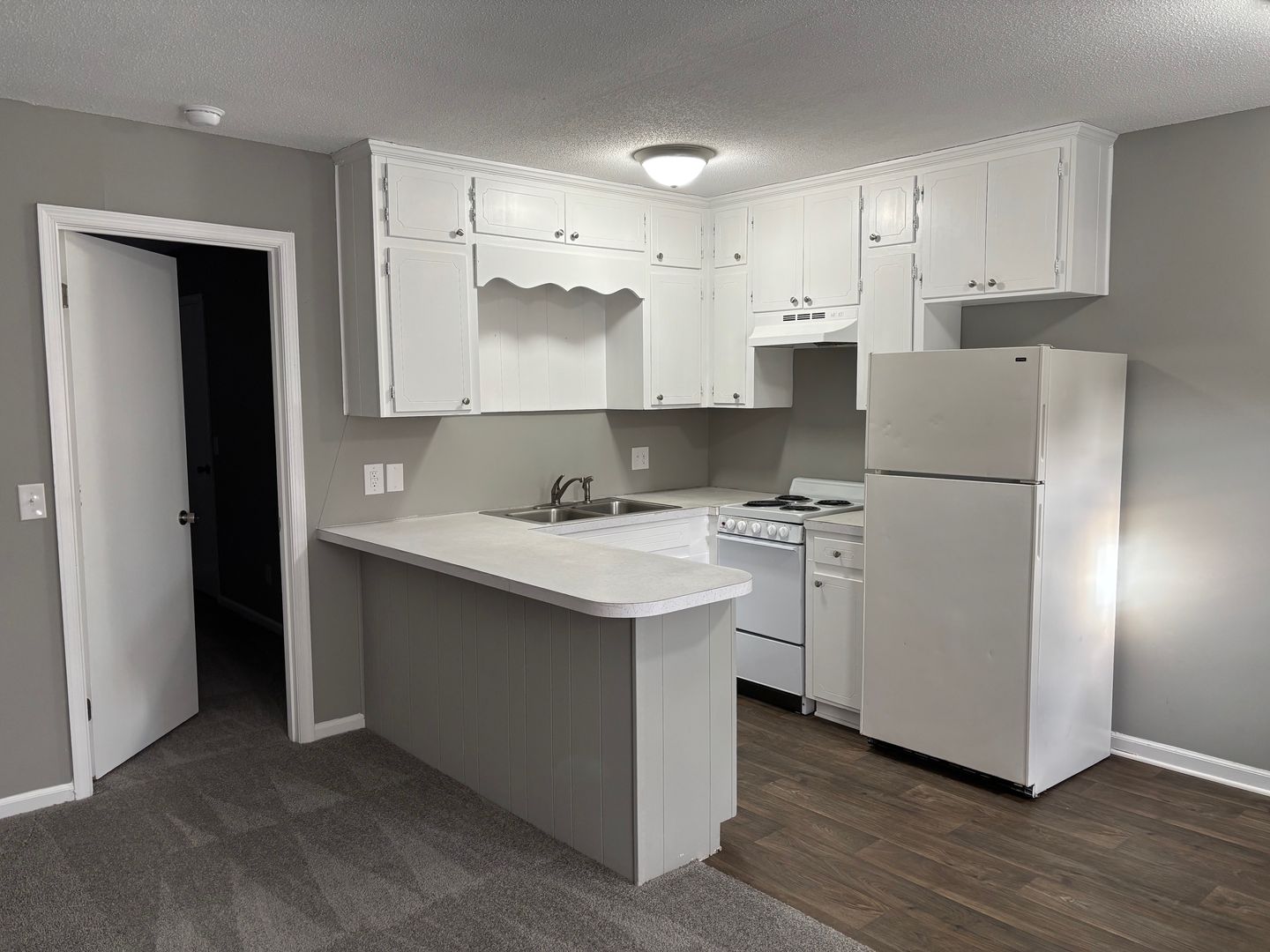 APPLIANCES: STOVE AND REFRIGERATOR. NEW CARPET AND VINYL.