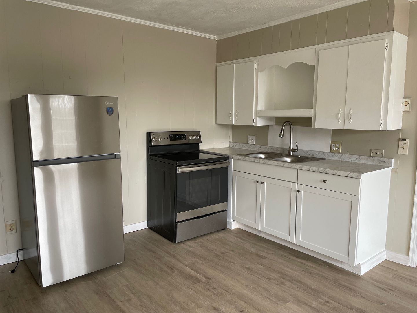 1 BED, 1 BATH APARTMENT, UPSTAIRS, STOVE, FRIDGE, LVP FLOORING, WALL AC, ELECTRIC CEILING HEAT, NO PETS, WILL ACCEPT SECTION 8, $600 MONTH, $600 DEPOSIT